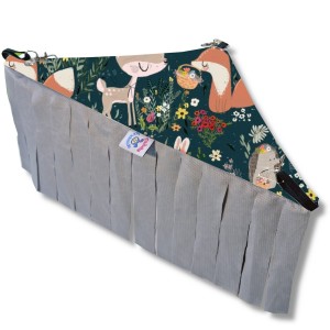 Recznie wykonany, uniwersalny hamak narożny z frędzlami dla gryzonii: świnki morskiej, szczura, chomika oraz szynszyli od Milutek Handmade.