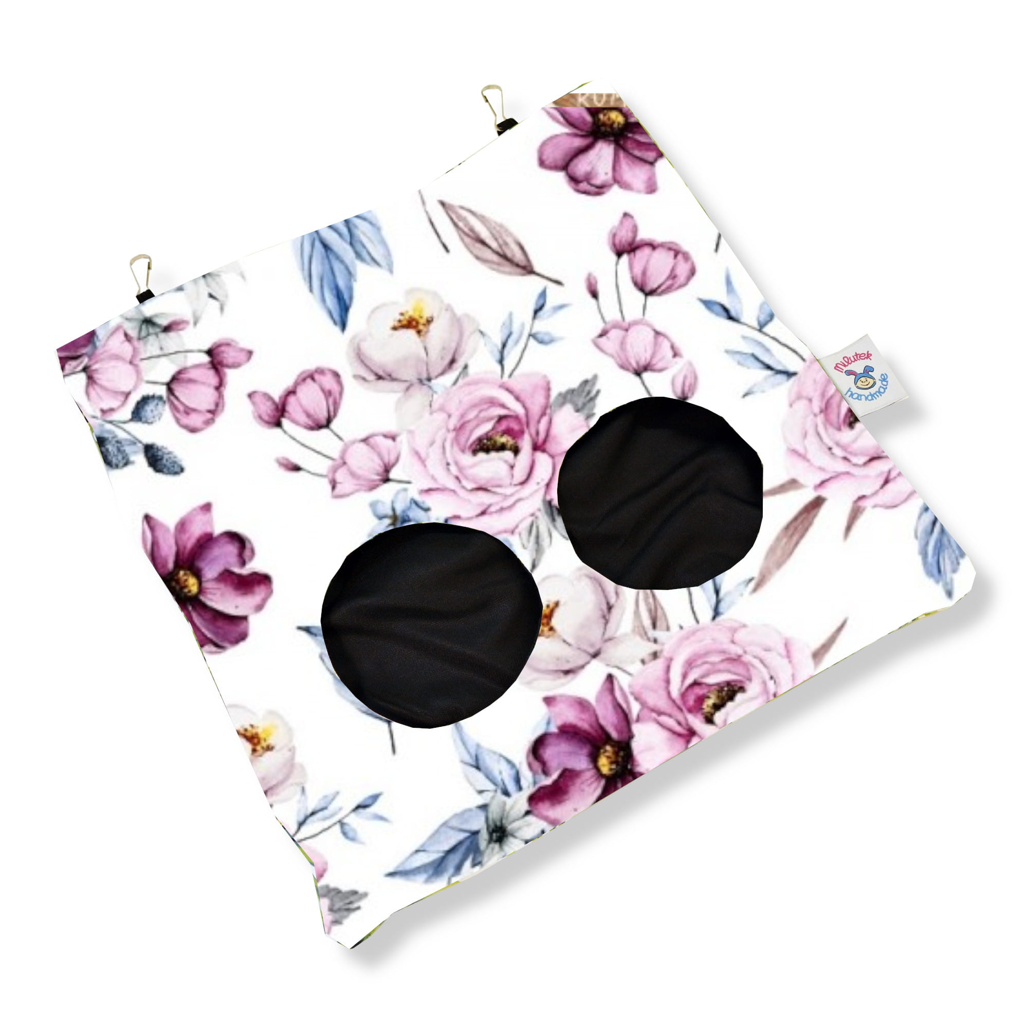 u góry znajdują się gumki z karabińczykami do mocowania do klatki.