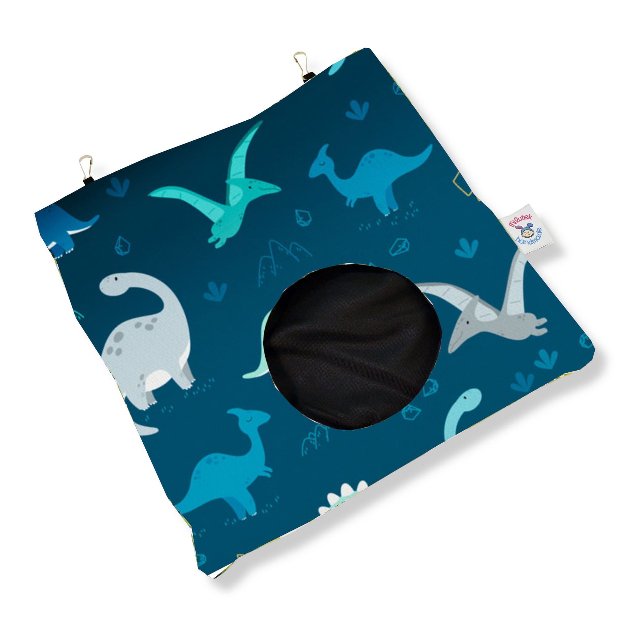 u góry znajdują się gumki z karabińczykami do mocowania do klatki.