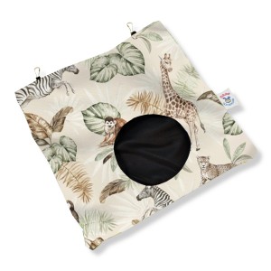u góry znajdują się gumki z karabińczykami do mocowania do klatki.