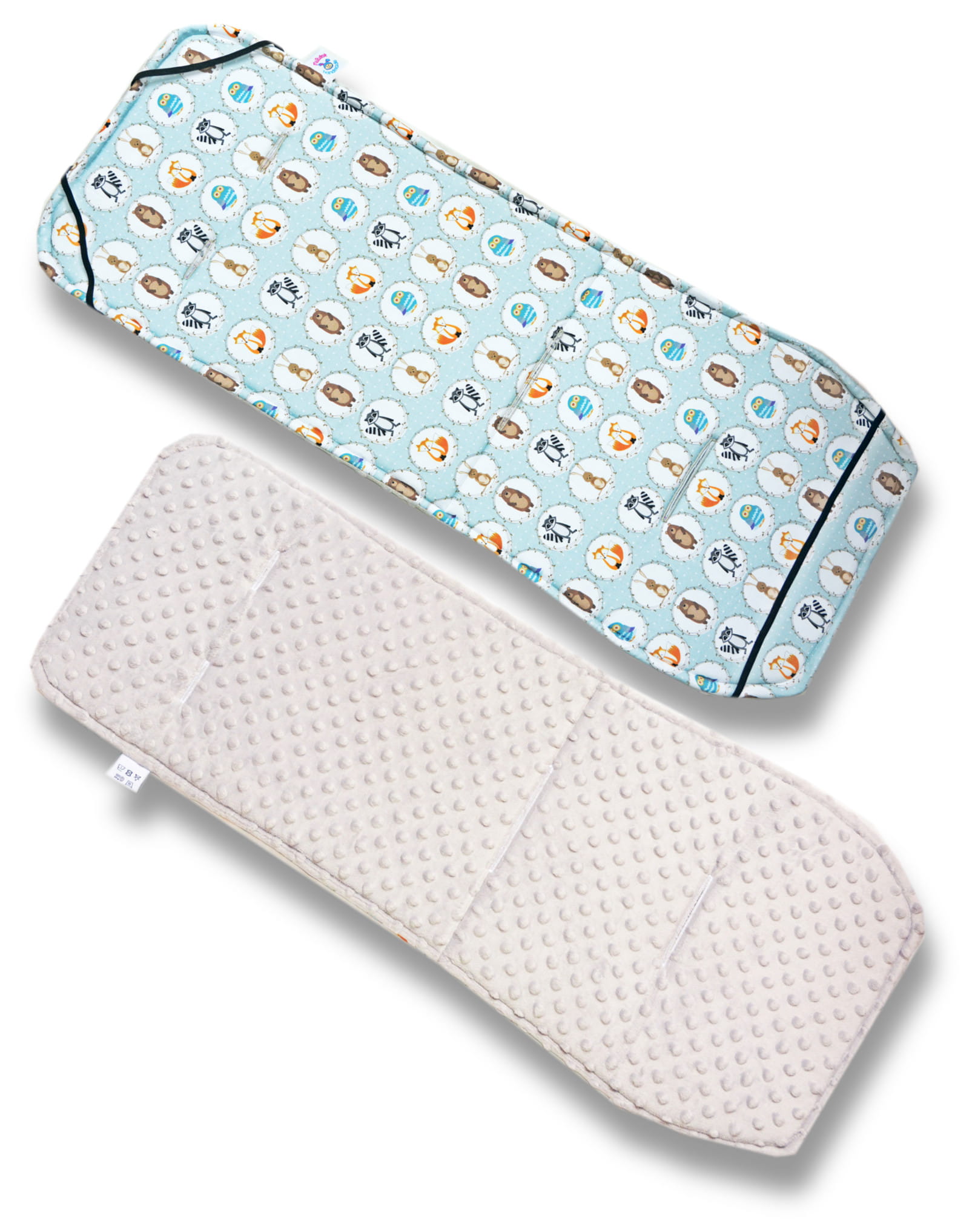Wkładka do spacerówki wypełniona jest sprężystą pianką o grubości 1cm, która gwarantuje długotrwałe użytkowanie, nie zmienia ona kształtu z czasem, można ją prać w pralce (bez wirowania), Materacyk gwarantuje komfort, szczególnie w spacerówkach nie posiadających amortyzacji i miękkiego wykończenia siedziska. Tkanina bawełniana jest idealna dla wrażliwej skóry dziecka, materiał minky idealnie ogrzewa w okresie przejściowym i ziemie.