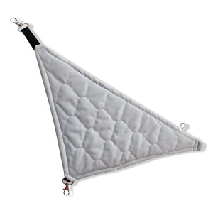 Hamak narożny dla gryzonia, to przede wszystkim znakomity sposób na powiększenie przestrzeni w klatce. Dzięki specjalnym karabińczykom, mocujemy go na dowolnej wysokości, przez co zyskujemy dodatkową powierzchnię pod spodem. Na hamaku nasza świnka morska, szczur czy szynszyla odpoczywają, a pod spodem mogą swobodnie biegać, dzięki czemu nie brakuje im przestrzeni do zabawy.