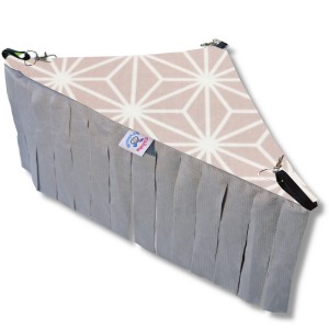Recznie wykonany, uniwersalny hamak narożny z frędzlami dla gryzonii: świnki morskiej, szczura, chomika oraz szynszyli od Milutek Handmade.