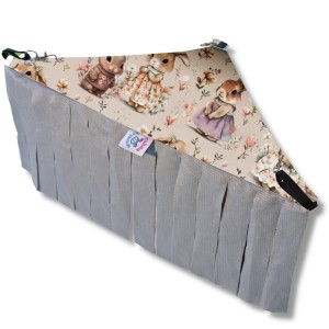 Recznie wykonany, uniwersalny hamak narożny z frędzlami dla gryzonii: świnki morskiej, szczura, chomika oraz szynszyli od Milutek Handmade.