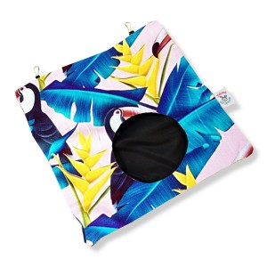 u góry znajdują się gumki z karabińczykami do mocowania do klatki.