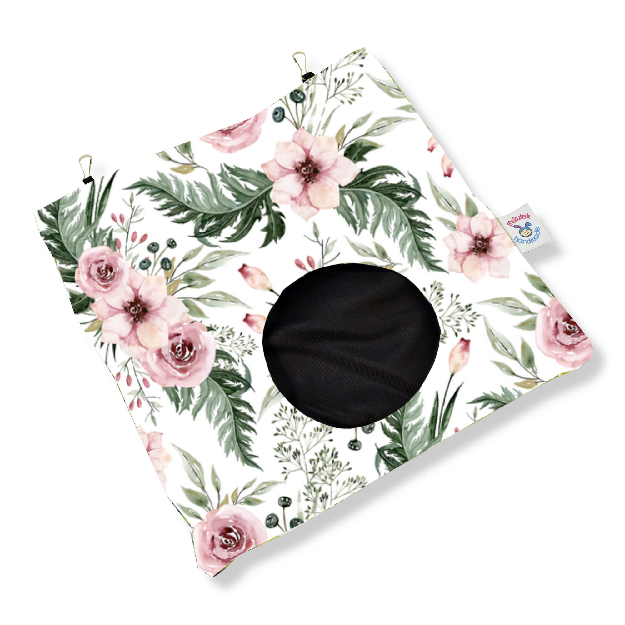 u góry znajdują się gumki z karabińczykami do mocowania do klatki.