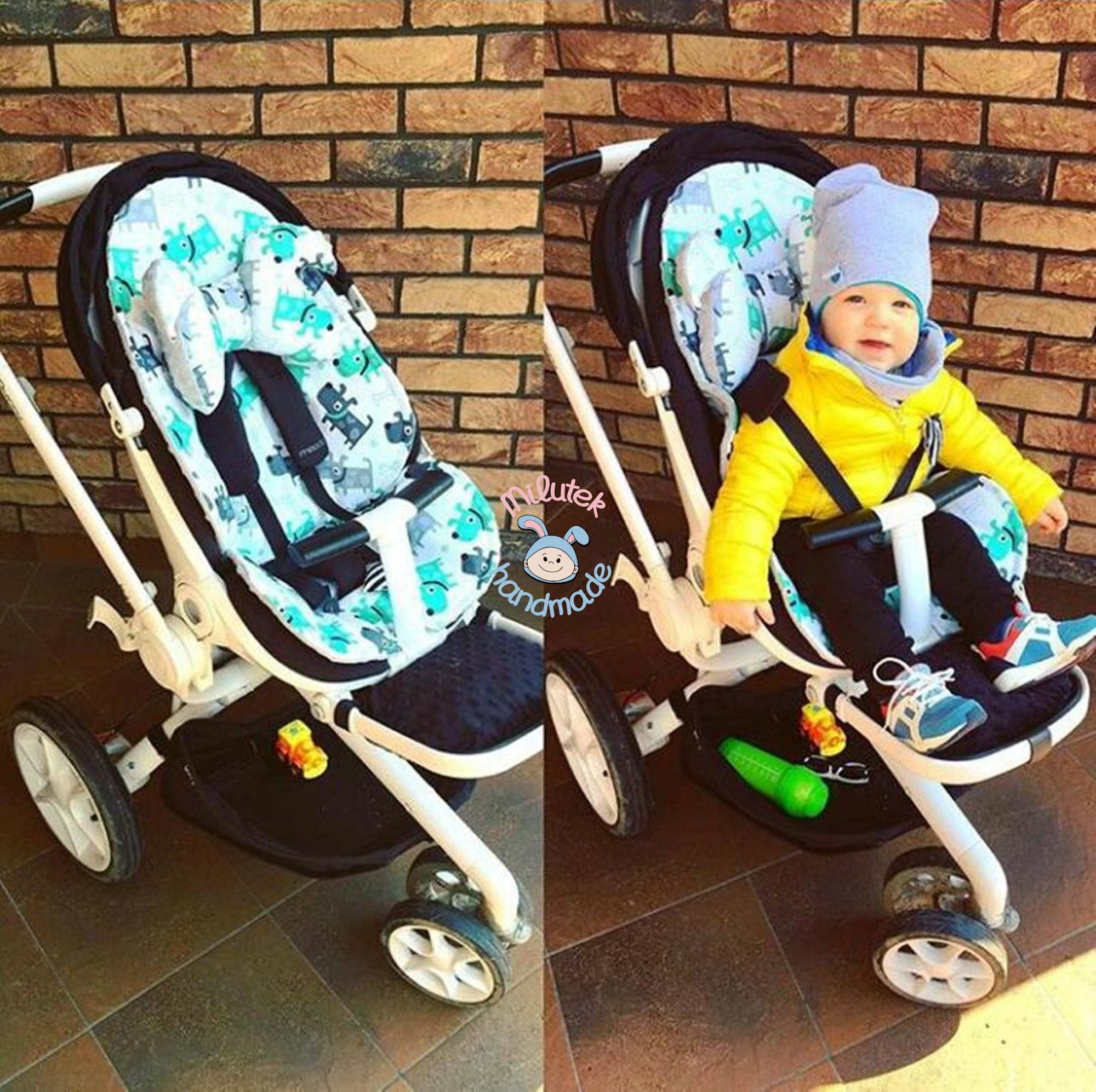 Wkładka do spacerówki wypełniona jest sprężystą pianką o grubości 1cm, która gwarantuje długotrwałe użytkowanie, nie zmienia ona kształtu z czasem, można ją prać w pralce (bez wirowania), Materacyk gwarantuje komfort, szczególnie w spacerówkach nie posiadających amortyzacji i miękkiego wykończenia siedziska. Tkanina bawełniana jest idealna dla wrażliwej skóry dziecka, materiał minky idealnie ogrzewa w okresie przejściowym i ziemie.